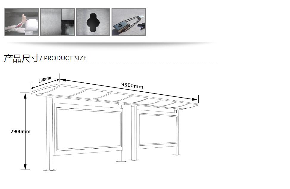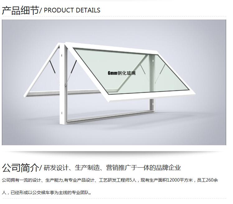 候車亭具有滾動廣告燈箱,還有與之配套的廣告垃圾箱,另外,簡約流暢的鋼結構線條,透明的夾層玻璃頂棚,還有不銹鋼的坐椅,這樣的候車亭在城市廣泛使用,吸引不少市民的目光,城市的街道因為有了候車亭而變得更加整潔。